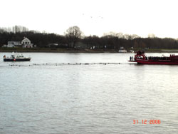 und Gesellschaft ans Rheinufer gekommen, um dem zu dieser Jahreszeit ungewöhnlichen