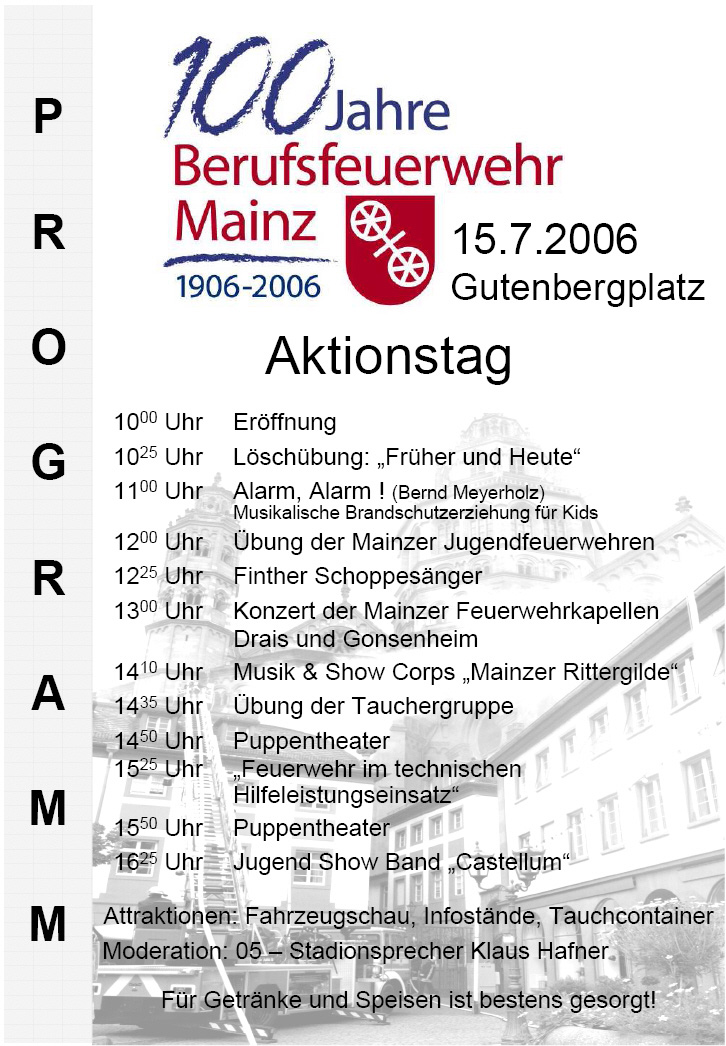 Informationen und Bilder zum Aktionstag der Feuerwehr Mainz am 15.07.2006 auf dem Gutenbergplatz